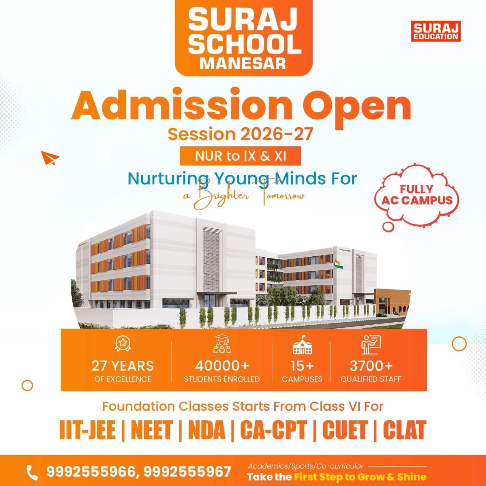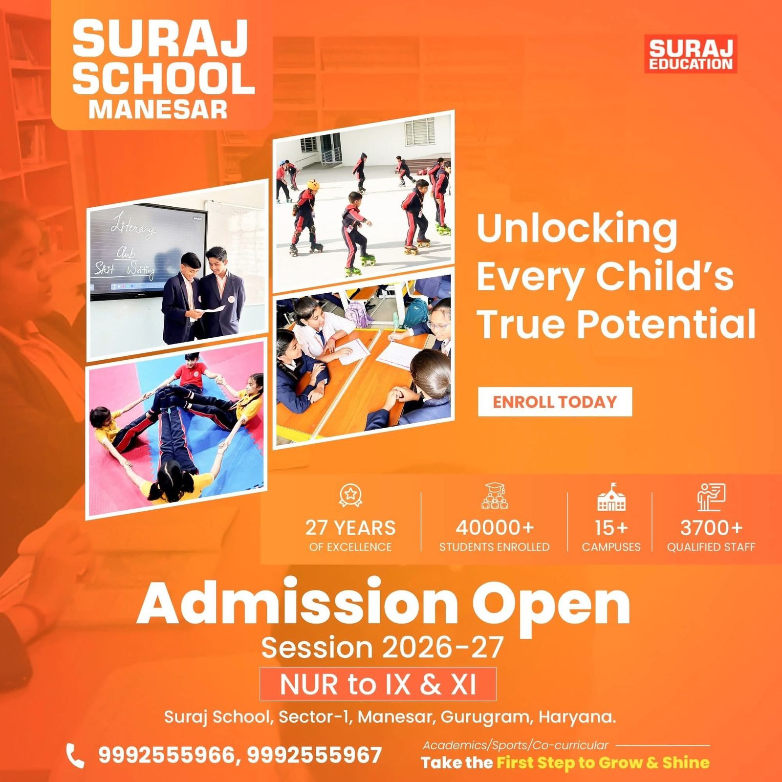At Suraj School, students are developed and nurtured with an optimum blend of excellence in academics,cultural, innovation, sports, performing arts, personal growth and human values.